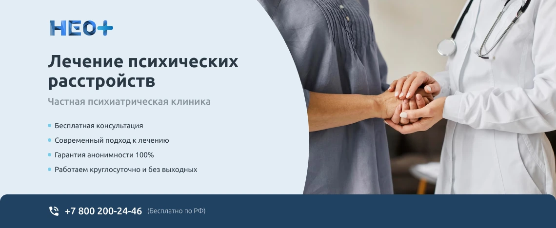 Чтобы ускорить процесс нормализации состояния, обратитесь в клинику «НеоПлюс» в Городце. У нас работают профессиональные врачи, которые знакомы с особенностями лечения заболевания. Они изучат состояние пациента, проведут диагностику и разработают грамотную схему лечения. Чтобы обратиться в отделение психиатрии и получить квалифицированную помощь, позвоните по телефону ☎️ +7 (800) 200-24-46. Дополнительно можно оставить заявку через форму обратной связи. Наши сотрудники ответят на звонок, после чего подскажут, как воспользоваться услугой.
